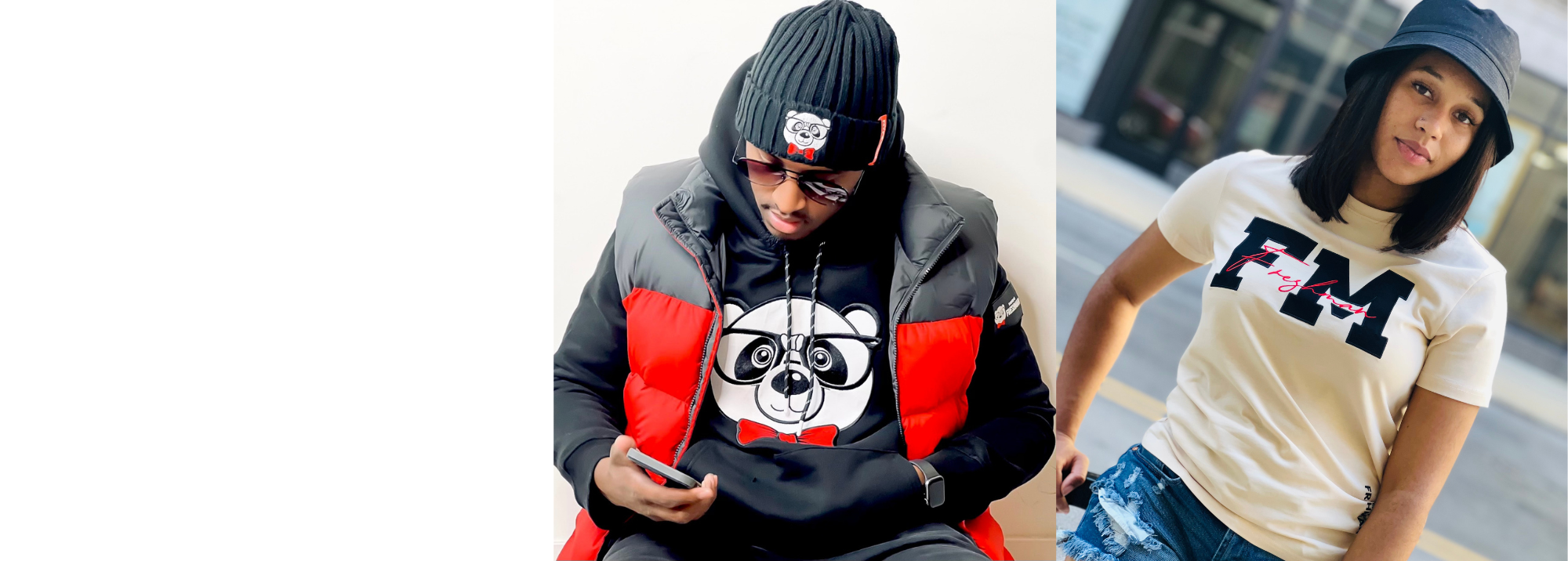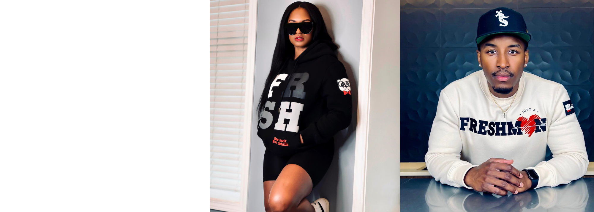All of our clothes are custom made. We have full control over the ratio of material, the density, and cut of all our pieces. We do not print or embroider over generic brands such as Guildan or Next Level.